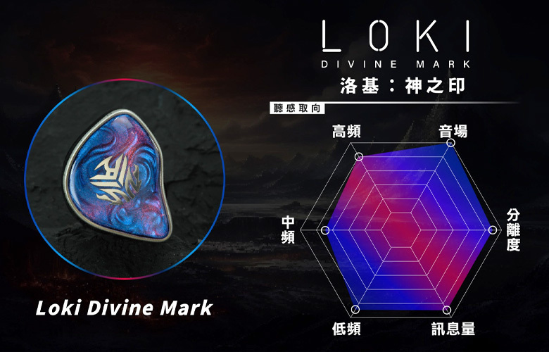 Loki Divine Mark 主打精緻均衡的調音路線,相較於原版,在氛圍感、空間感與包圍低頻質感進行加強,令整體音色更趨向於現代旗艦入耳式耳機所追求的立體層次、鬆弛自然的音樂氛圍。其音場的縱深和橫向表現寬廣平整,具有更加開闊的空間感,同時兼具細膩與耐聽的健康音色。