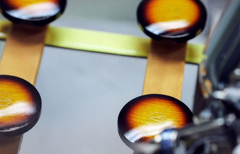 這是 Audio-Technica 首度在耳機上採用深受吉他手青睞的「硝基漆塗裝(Lacquer Finish)」。透過特殊的硝基漆工藝,兼具了其特有的深邃光澤與高耐用性。三色日落漸層是長期深受琴手喜愛的經典配色,本產品正是融合了極致美學與聲學堅持的特別之作。令人聯想起弦樂器的優美木紋,支撐起清晰音像的實心梣木材。 機殼採用了傳統電吉他與電貝斯常用、樂手們極為熟悉的「實心梣木(Solid Ash)」。充分發揮實心梣木特性的機殼設計與精密調校,能準確重現鮮明的聲音輪廓、厚實的低音,甚至是琴弦餘韻(Sustain)的細微變化。