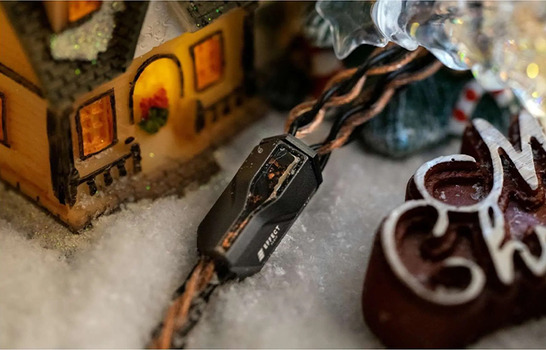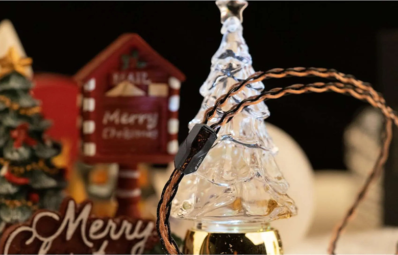 DIONYSUS × Eros S II 聖誕限量版耳機線,採用全新設計的外層包覆,閃爍著細緻光影,隨光線優雅律動。黑色部分喚起冬夜的靜謐,呈現出沉穩與優雅。