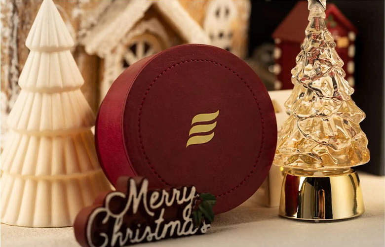這款聖誕限量版耳機線,搭配專屬設計的 聖誕收納盒。酒紅色皮革外觀,如熱紅酒般溫暖,喚起聖誕團聚的氛圍。