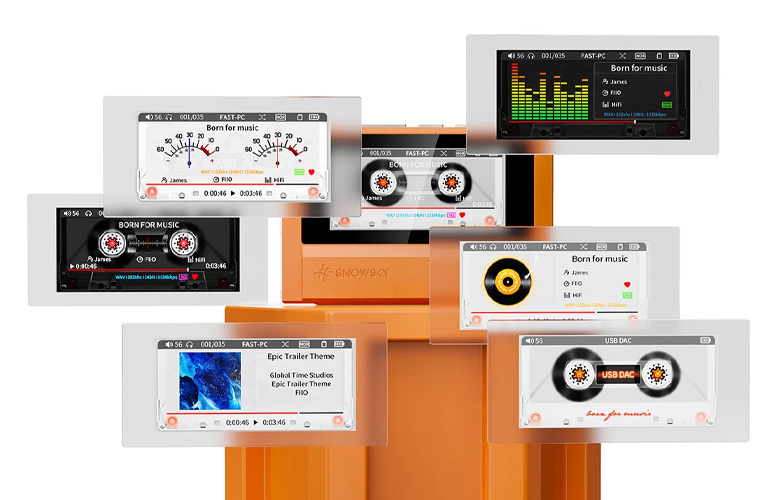 精心定制 VU 表、磁帶、音訊律動等多款復古風格動態 UI 設計,支援封面歌詞顯示*。2.39" 高解析度彩色顯示幕,封面、文字畫面更加細膩生動,視覺體驗更為舒適。