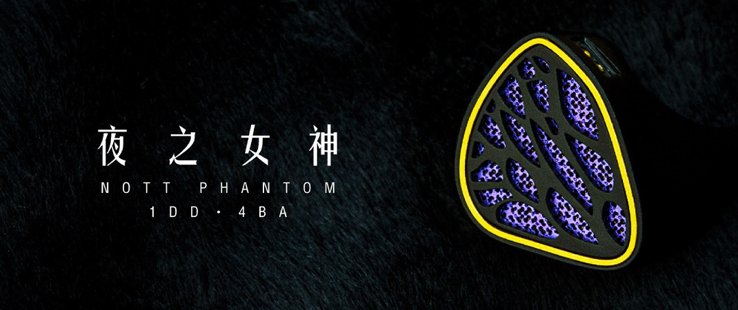 Nott Phantom 採用 1+2+2 三路分音的單元架構,低頻部分由一顆 8mm 高聚纖複合振膜動圈單元負責,其低頻表現深沉有力,下潛充足,具有一定的彈性以及擴散感;中頻部分採用兩顆定製 Knowles 婁氏全頻動鐵單元,通過精準電子分音技術,呈現飽滿細膩的結像,帶來溫潤迷人的中頻質感;高頻與超高頻則由兩顆定製 Sonion 聲揚動鐵單元組成,透過雙動鐵復合架構提升高頻密度與延伸,延伸表現清澈自然,能精準地分離樂器細節,營造出星光閃爍的沉浸氛圍。