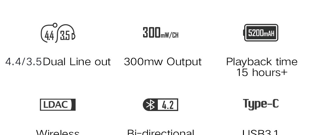 連接上,PAW 6000 除了擁有 3.5mm 與 4.4mm 平衡輸出(採用了日本 Pentaconn 插座),亦同時具備了 Line-out 功能,可輸出至前級或有源喇叭中,又或者變身為 USB DAC 作解碼耳擴輸出至耳機。以及支援藍牙 4.2(雙向藍牙、LDAC、藍牙 DAC 功能)、USB DAC 功能(Type-C)、最高 2TB MicroSD 卡。而且內置 5,200mAh 鋰電池可連播 16 小時以上。