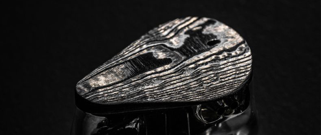 Dark Saber 擁有引人注目的特殊面板,其所採用的材料,是此前常用於超高奢運動腕錶的昂貴尖端科技材料。該材料由數百層高強度碳纖維經特殊的超高壓高溫處理後製成,兼具超金屬材料的高強度性能和超輕量特性(但比大馬士革鋼更昂貴),成型後每片面板上所呈現出的獨一無二的紋理,是科技與美學的碰撞。