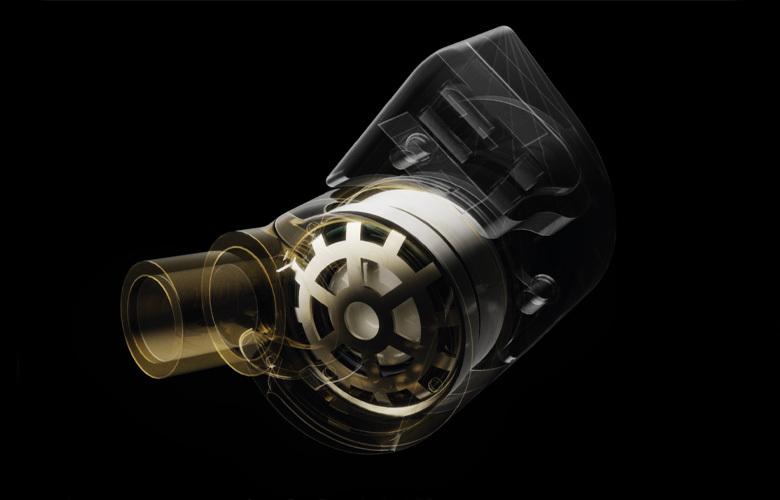 Illustrious 的聲學設計融合現實聲學效應與精密的CNC技術,令單元能夠在長衝程及高磁通量的 硬性標準下,依然保持優秀的運動性能及極低全頻失真率。結合工程學、聲學數據及實際聽感的好處是更加直觀,也更加「有根有據」,而不會因個人感受 而令音質流於片面之詞,這是水月雨一直秉持的調音哲學,而 Illustrious 則是這種根據下,更加 成熟的表現。先說外殼結構,Illustrious 採用了一種三文治式的組裝方式,外層採用由 CNC 雕刻 而成的電鍍鈦合金結構件,鎖定處於「夾心」的黃銅聲學結構。這個結構比起傳統內斟式設計更 加牢固,也令到腔體成為阻己的一部份,將諧震對聲音的影響減到最低。當然前提是整個結構都需要是密合的,因此對 CNC 雕刻的精度非常高。