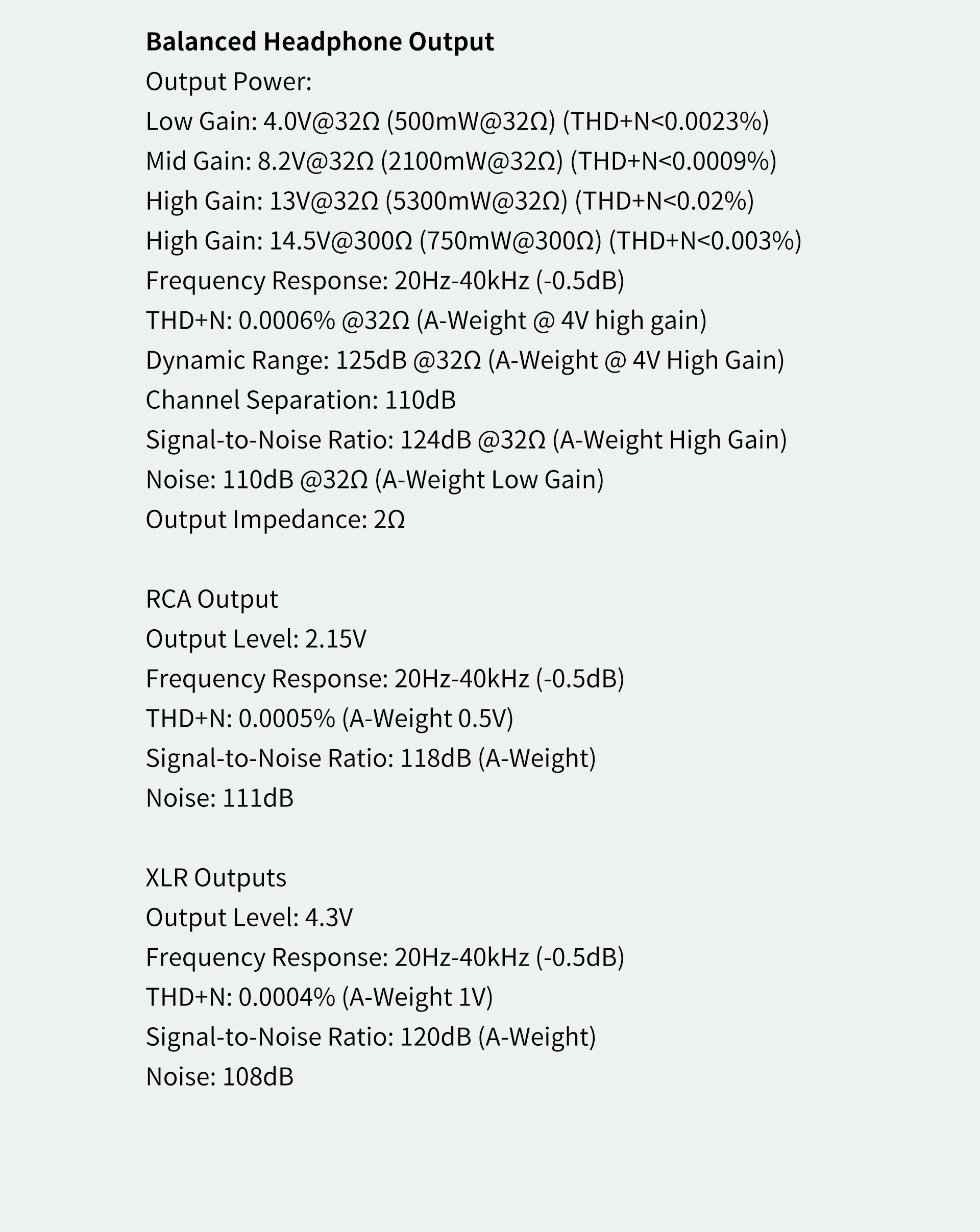 以上特質,可以充分滿足線路需求,即便是在平衡 4 路輸出時,每一路也可使用雙通道工作;電流型的輸出,更符合 Shanling 對台機的需求:聲音飽滿、暖度高;高性能的指標及高能量感的聲音,則為調音打下了堅實基礎。