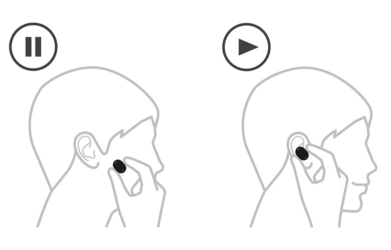 只要將耳機取出,音樂就會自動停止,因為電容式感應器會知道您正在使用耳機,更有助提升偵測準確度和設計。將耳機戴回,音樂就會再次開始播放。