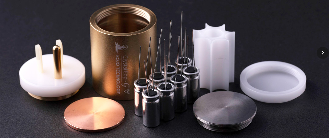 作為最新成員, Crystal Eop-G 系列與盒形的 Crystal E-G 系列,以及棒狀的 Crystal Ep-G 系列產品完美配合,共同組成了 KOJO 模擬接地系列的「三神器」。盒形的產品主要負責強化單一設備的接地,棒狀的產品則專注於改善器材內部電路的接地狀況。至於 Eop-G 系列則承擔起改善整個音響系統接地環境的重任。三種產品協同工作,可以全方位優化您的音 響系統接地,確保設備和電路的穩定運行,並帶來聲音的巨大改善。