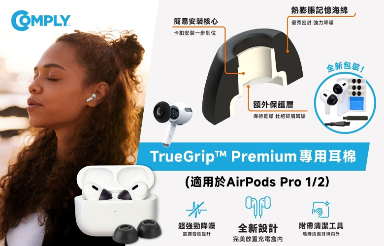 Comply Apple TrueGrip™ Premium 專用耳棉 - 兼容 Apple Airpods Pro 第一及第二代型號