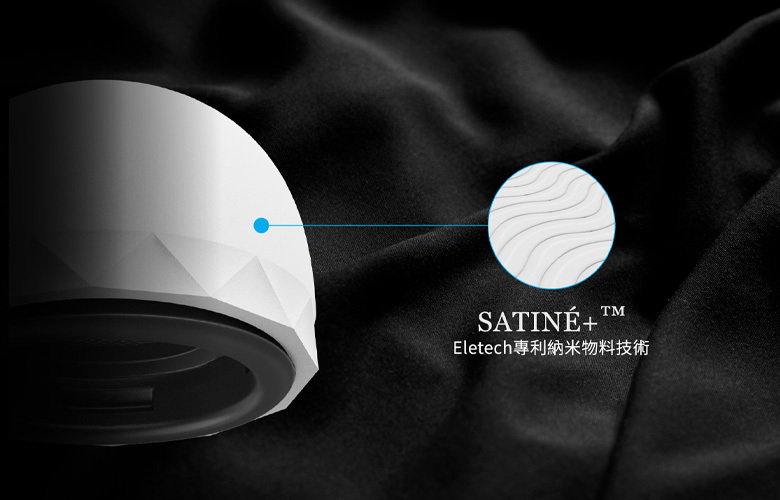 「SATINÉ+™」是 Eletech 專有的創新材料技術,采用通過奈米波浪紋結構,讓耳帽表層更均勻地分散耳壓分佈,從而減低了與皮膚與耳膠表層的磨擦,有助聲音更直接地傳導至耳道內。而奈米光滑塗層夠提升整體觸感和舒適度,擁有更佳的佩戴體驗。