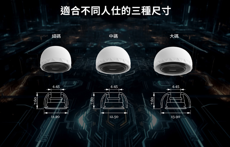為配合不同用家的耳道,Baroque Airpods Pro 分別推出了三款大小的耳膠以配合大家的需要。