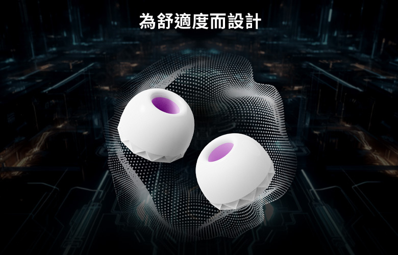 PureShield™ 技術,這項創新技術使得 TWS 的「巴洛克」耳膠擁有低過敏性抗菌特性,形成一層保護性塗層,抑制細菌生長。這項創新技術不僅確保了更清潔的佩載體驗,還能在長時間使用後,持久保護耳膠,防止變色、變形和開裂的情況發生。