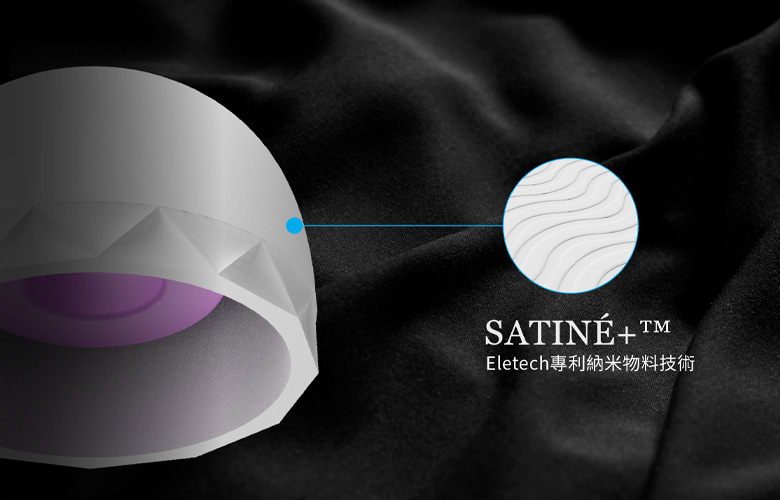 「SATINÉ+™」是 Eletech 專有的創新材料技術,采用通過奈米波浪紋結構,讓耳帽表層更均勻地分散耳壓分佈,從而減低了與皮膚與耳膠表層的磨擦,有助聲音更直接地傳導至耳道內。而奈米光滑塗層夠提升整體觸感和舒適度,擁有更佳的佩戴體驗。