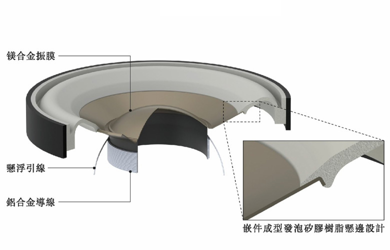 懸邊材質則捨棄常見的橡膠或塑膠,改以「灌注式矽膠泡棉」一體成形。此技術如同為單體打造抗震基座。透過極輕、柔軟卻厚實的結構,同步解決振膜靈活動作與抑制共振的矛盾難題。final 耗時數年研發此工法,需將鎂合金振膜固定於模具後直接注入矽膠材料,徹底避免傳統膠合工法導致的品質波動。