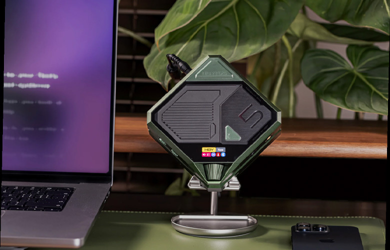 鋁合金外殼加上玻璃面板,滲修 cyberpunk 元素,彩色顯示屏隨狀態切換顯示,面板上亦配有採樣指示燈設計。100 級實體硬件音量調節旋鈕,精準控制音量,手感優秀。