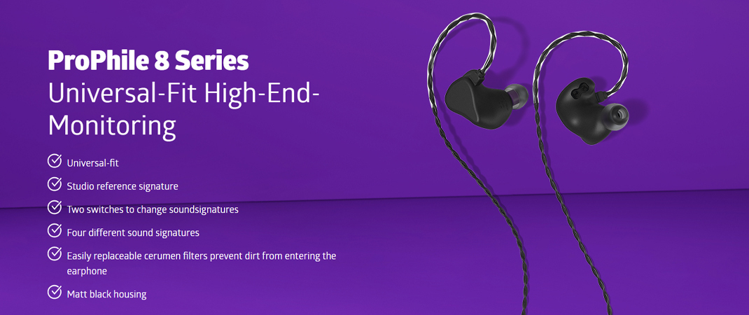 InEar 產品都是在德國製造,已有多年製作聽力輔助產品及耳機的經驗,StageDiver 系列入耳式耳機就最廣為人知。ProPhile 8(PP8)是定位於 StageDiver 系列以外的旗艦級耳機,外型設計以 SD 系列為基礎,仿似客制化耳機,機身頂部突出的位置有助固定耳機,佩戴更為穩定,適合絕大部分用家,更有高達 26dB 的隔音效能。與 SD 系列不同的是,ProPhile 8(PP8)採用了啞黑色外殼,與絕大多數耳機的光面不同,啞面散發著神秘、高貴的感覺,突顯其旗艦地位。