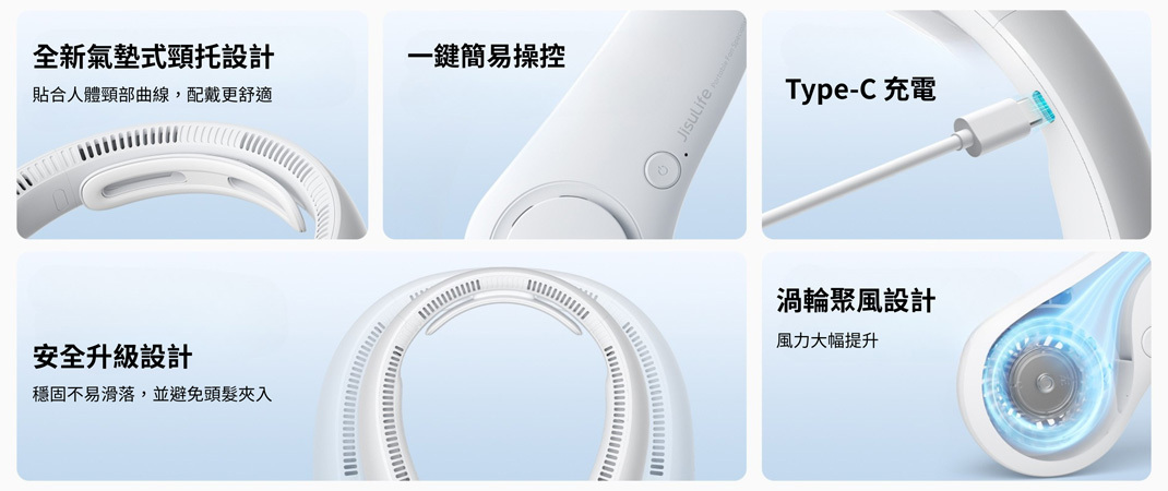 貼合人體頸部曲線|5 級強勁風力|內置 5000mAh 電池|免提升級設計|經典設計風靡全球|低噪音舒適設計