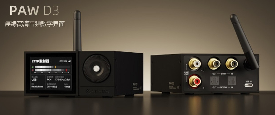 將數位音訊訊號無線傳輸到支援 LTTP 接收的裝置(如 Lotoo Mjolnir、PAW GT2、PAW D3 等),適合無線,有線桌面音訊或行動裝置連線。