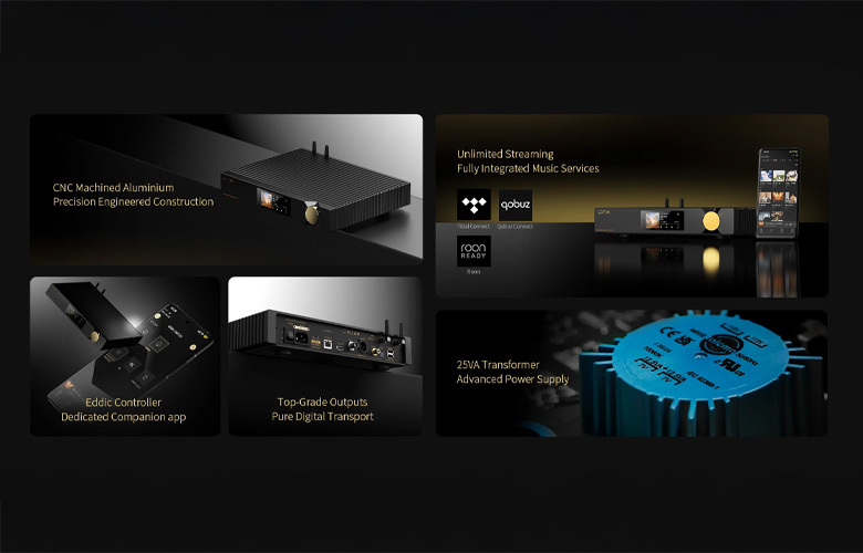 全新優化的 Eddict Controller APP,集成了文件管理、設備操控及流媒體播放等功能。用 戶不但能通過手機對設備進行詳盡的設置,還可以瀏覽和播放本機及 NAS 中的音樂文件,暢聽 Qobuz、Tidal、索尼精選、百度網盤等流媒體平台的音樂資源。