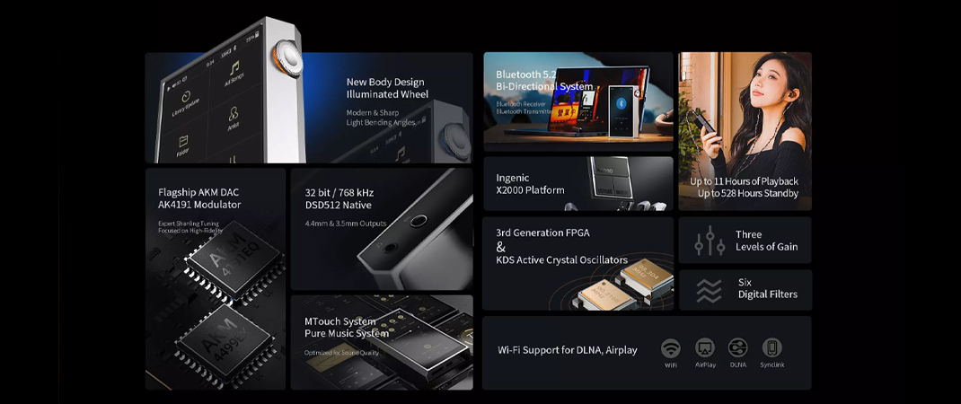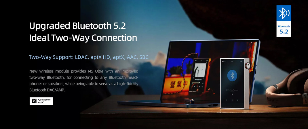 2024 年了,當 Shanling 決定要推出一款純音機時,部分功能也需要進行升級。在無線傳輸領域,M5 Ultra 實現了多樣突破,搭載了雙向藍牙 5.2 技術,並搭載了雙頻 WiFi,實現了除本機播放以外,無線化的高清傳輸。