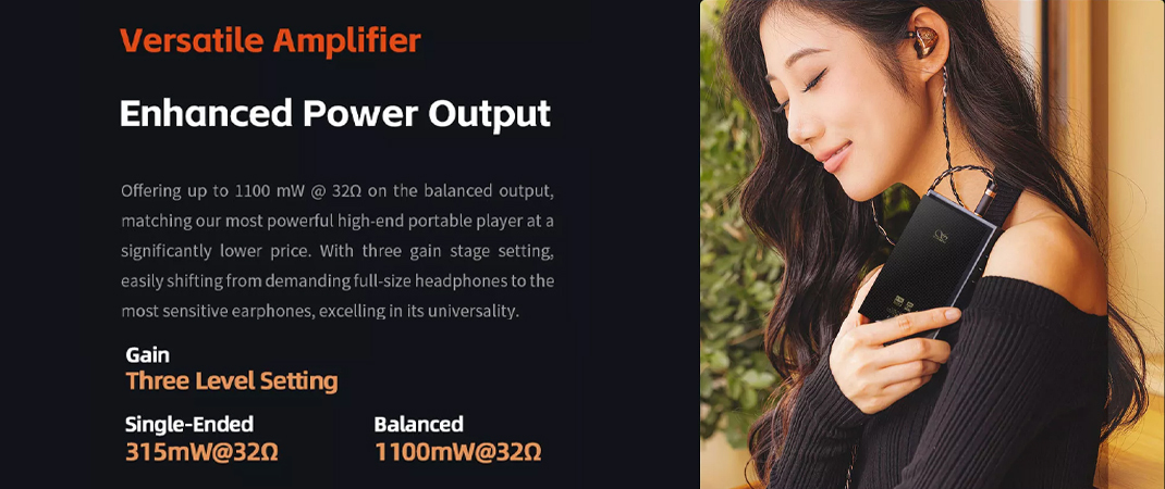 有關 M5 Ultra 的輸出方面,Shanling 工程師在電路排布時採用了大量的升壓穩壓元器件和電源芯片,保證了內部信號和能量傳輸的穩定性。M5 Ultra 紙面的驅動力數據是,1100mW@32Ω 的最大功率,三擋增益可調。