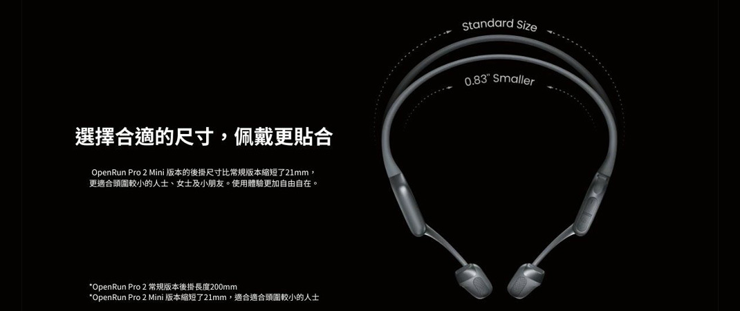 Mini 版本的後掛尺寸比常規版本縮短了 21mm,更適合頭圍較小的人士、女士及小朋友。使用體驗更加自由自在。