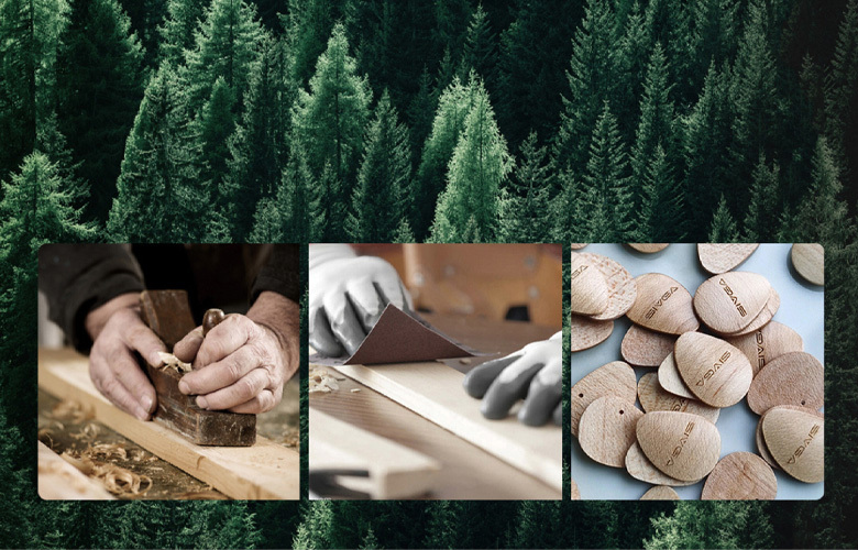 「Que|鵲採用北美白楓木製成後腔板,質地堅硬,絢麗的木紋滿足每個獨一無二的追求。耳機木質後腔體進一步吸收諧振,在聲音上提供高度的清晰感,深受電吉他玩家的喜愛,滿足年輕者卻追求動感音樂,實木的顏色更為大氣,獨特的紋理和雕刻的 logo 簡潔耐看。